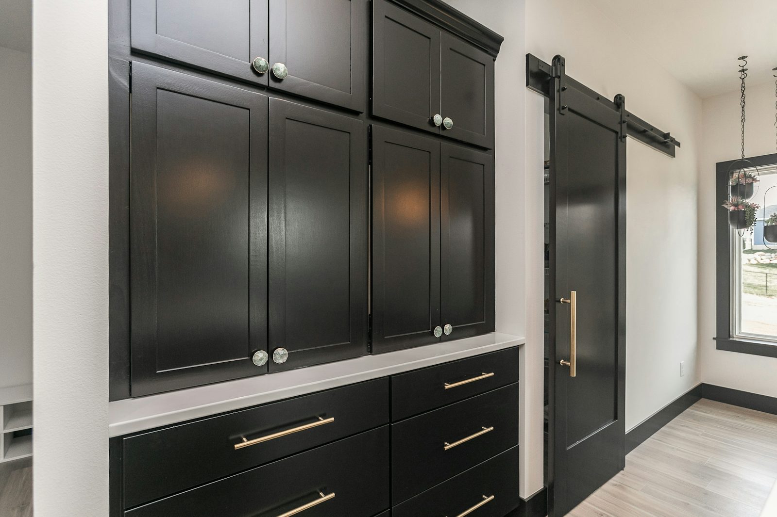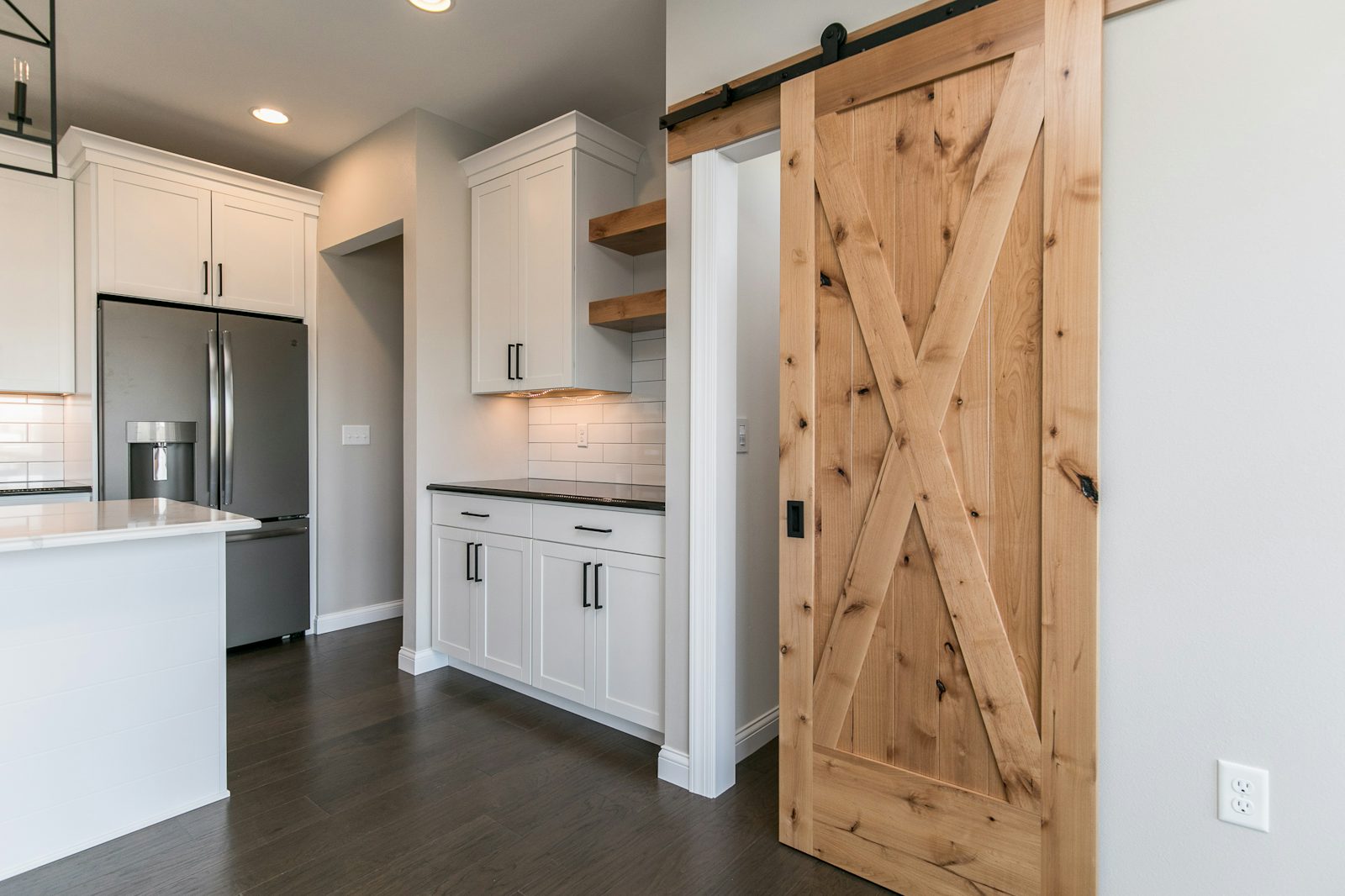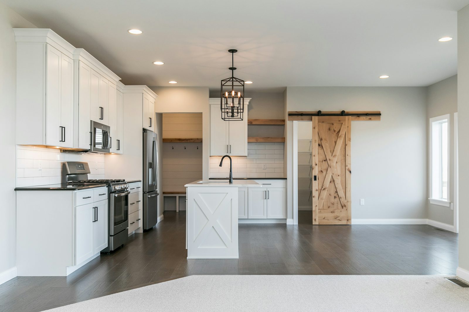 upgraded cabinetry, quartz countertops, and equipped with GE appliances. Ample counter space and a convenient walk-in pantry ensure
