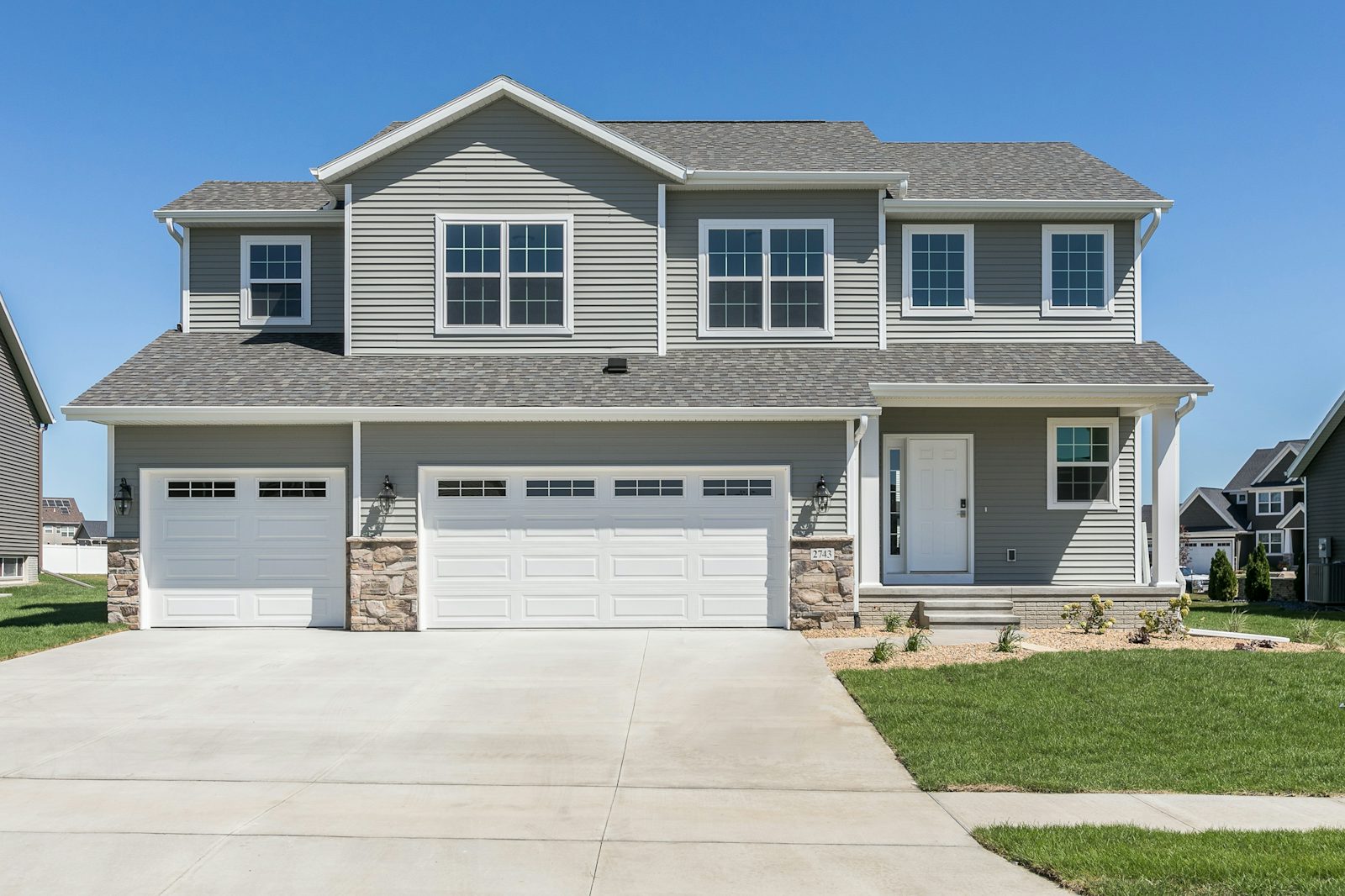 featuring a spacious three-stall garage that effortlessly accommodates your vehicles and storage needs. The second level boasts four