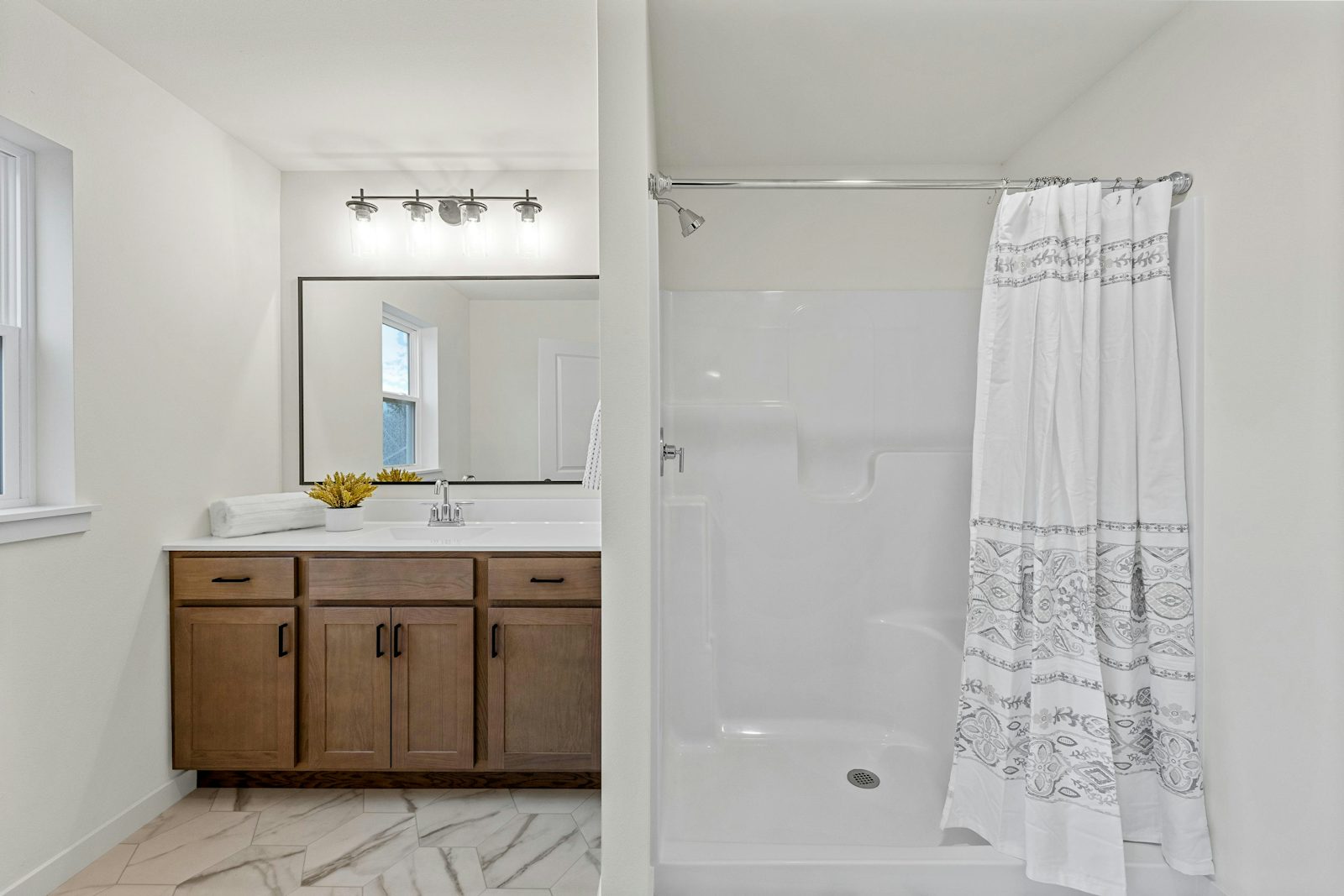 The Forest Hill is a two-story plan in Knollwood laid out for modern family living. An open-concept kitchen with island flows into the living space, joined by a main-level powder room. Upstairs you’ll find three bedrooms, the owner’s suite with a walk-in closet and en suite bath, plus a laundry area near the bedrooms.