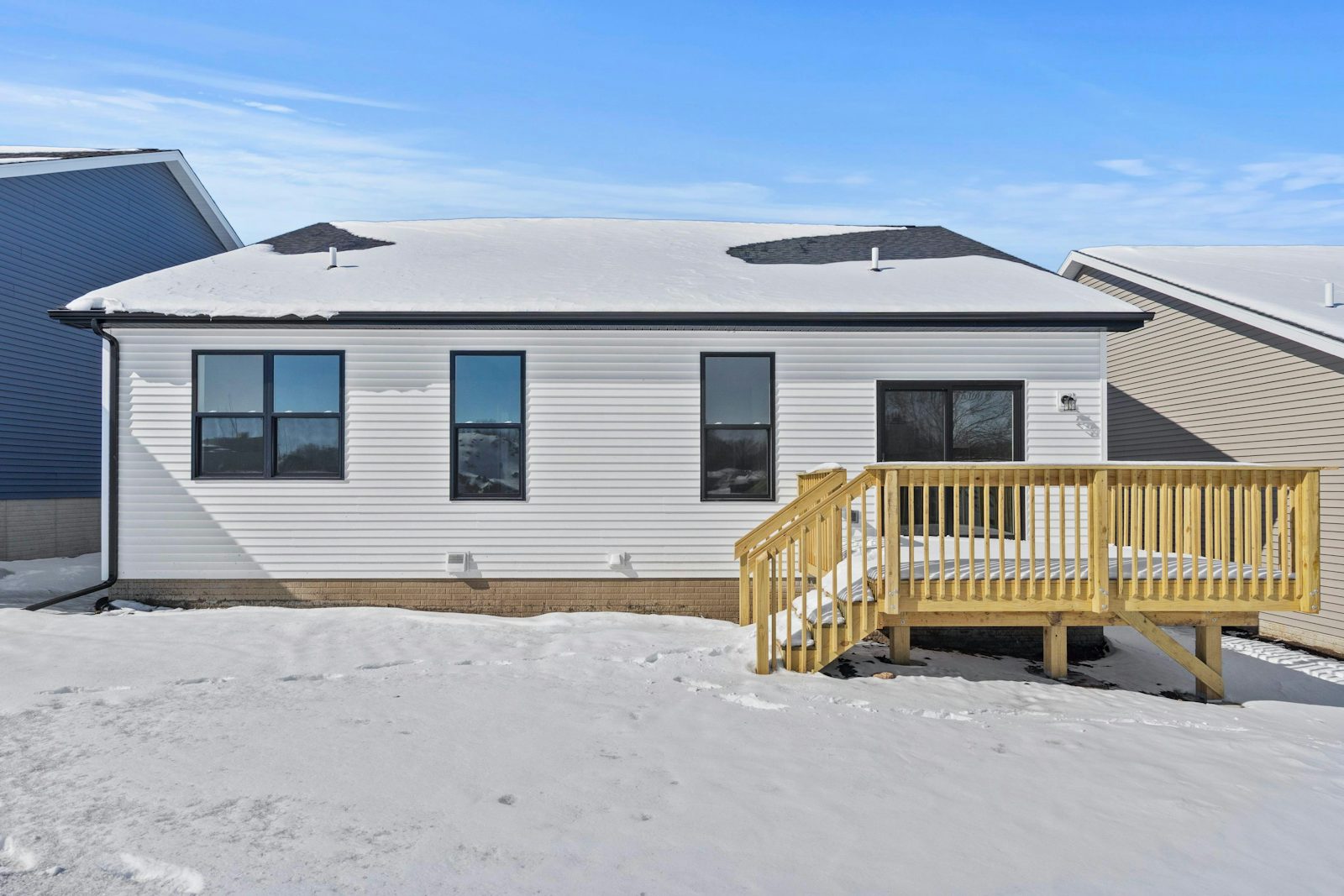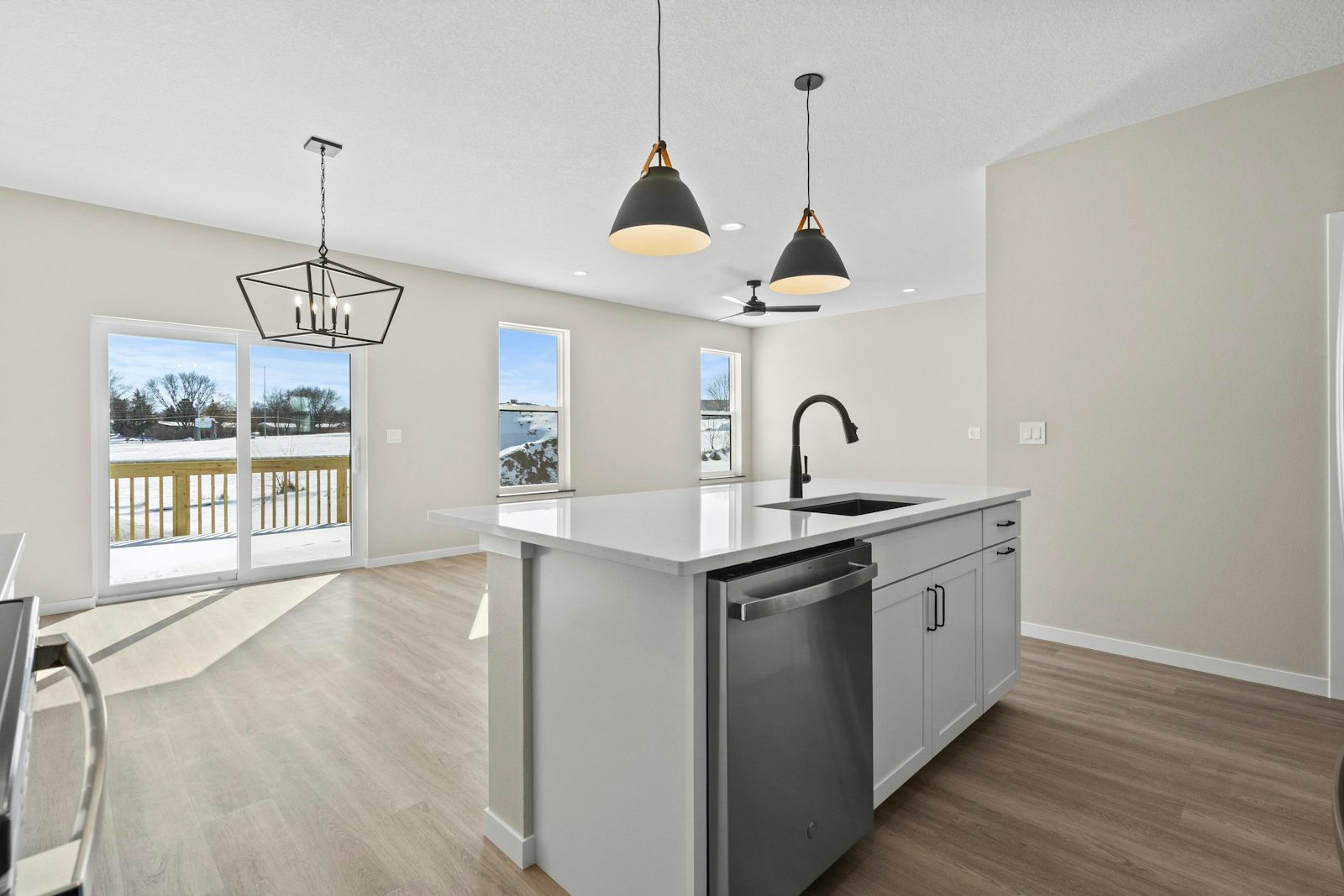 This 2-bedroom, 2-bathroom ranch offers 1,351 square feet of thoughtfully designed living space with today’s most sought-after features. Step inside to find 9’ ceilings, luxury vinyl plank flooring, and upgraded cabinetry throughout. The open-concept kitchen boasts quartz countertops, ample storage, and a seamless flow into the dining and living areas—perfect for entertaining or relaxing at home. The spacious primary suite includes a private bath and walk-in closet, while an additional bedrooms provides flexibility for family, guests, or a home office. The lower level is unfinished but offers endless potential with roughed-in plumbing for a future bathroom. Outside, enjoy serene views as the backyard backs up to open fields, creating both privacy and a natural backdrop. A 2-stall attached garage provides convenience and storage. Located just minutes from shopping, restaurants, and Sunnyside Country Club, this home combines quiet surroundings with easy access to all Waterloo has to offer. Backed by the quality and reputation of Skogman Homes, this is a perfect opportunity to own new construction in a fantastic neighborhood.