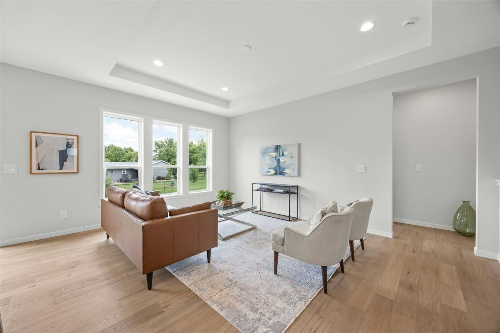 This thoughtfully designed home features tall ceilings, large windows, and high-end finishes throughout. Enjoy quartz countertops, engineered hardwood flooring, white painted trim, and stainless steel appliances all paired to create a bright and modern living space. Buyers love this design because of the split-bedroom layout and open concept great room. Located in an established community, this home includes a builder warranty for added peace of mind. The lower level offers potential for additional finished space and can be completed prior to closing. Sellers are open to a trade. Don’t miss this opportunity to move into a quality-built home in a prime location! Lower level can be finished prior to closing.
