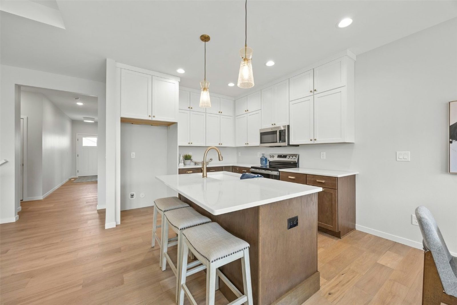 This thoughtfully designed home features tall ceilings, large windows, and high-end finishes throughout. Enjoy quartz countertops, engineered hardwood flooring, white painted trim, and stainless steel appliances all paired to create a bright and modern living space. Buyers love t...